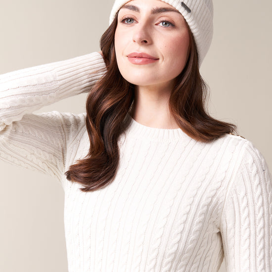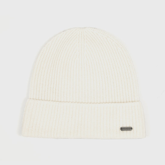 Soft, elegant, and timeless, the white Pride Ribbed Beanie is woven from a 70% wool, 30% cashmere mix for ultimate comfort. The ribbed knit design gives it both texture and stretch, while the metal bar tag adds a refined finish, making it a chic cold-weather accessory.