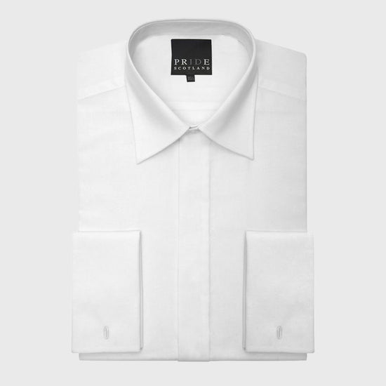 The White Pride of Scotland dress shirt is designed to deliver both elegance and comfort. Cut from crisp, breathable fabric, it features a classic design with a sharp collar and clean lines, offering the perfect complement to a kilt and jacket. Timeless, versatile, and meticulously made, it ensures a polished look for any formal occasion.